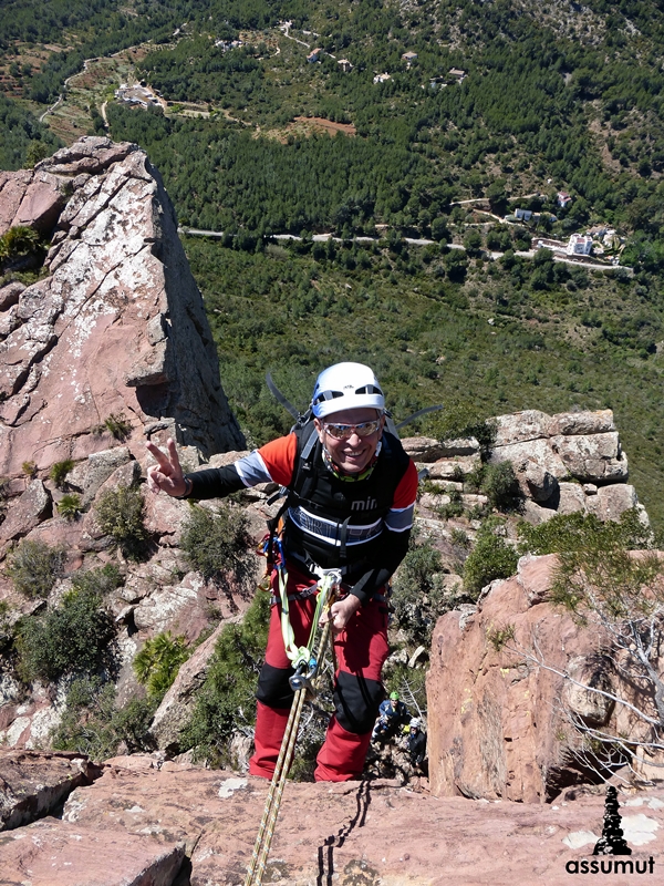 El segundo practicamos las técnicas de progresión y aseguramiento encordados en la bonita arista de las agujas de Santa Águeda en el desierto de las palmas de Benicasim, que de desierto tiene poco.