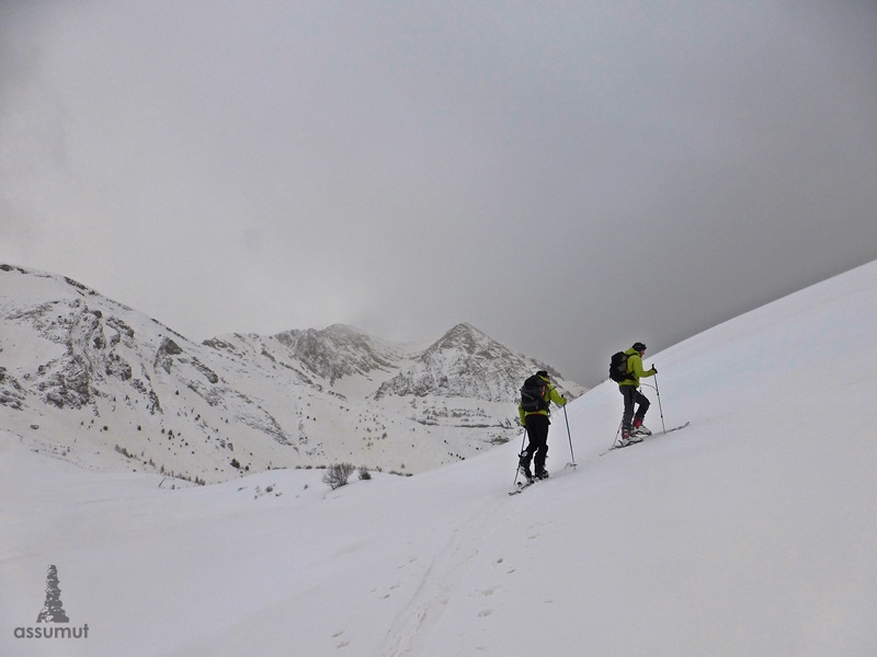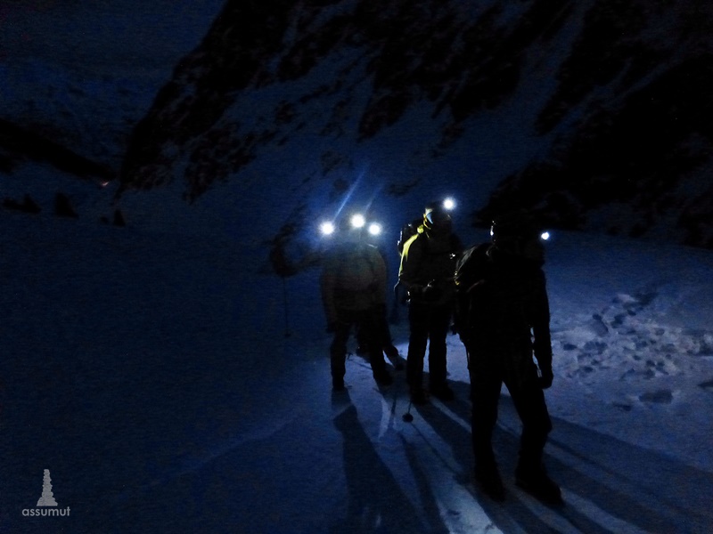 El sábado la meteo nos permitió escalar y como llegamos los primeros, nos hinchamos. Al día siguiente cero visibilidad y nevando con ganas, a esquiar toca…