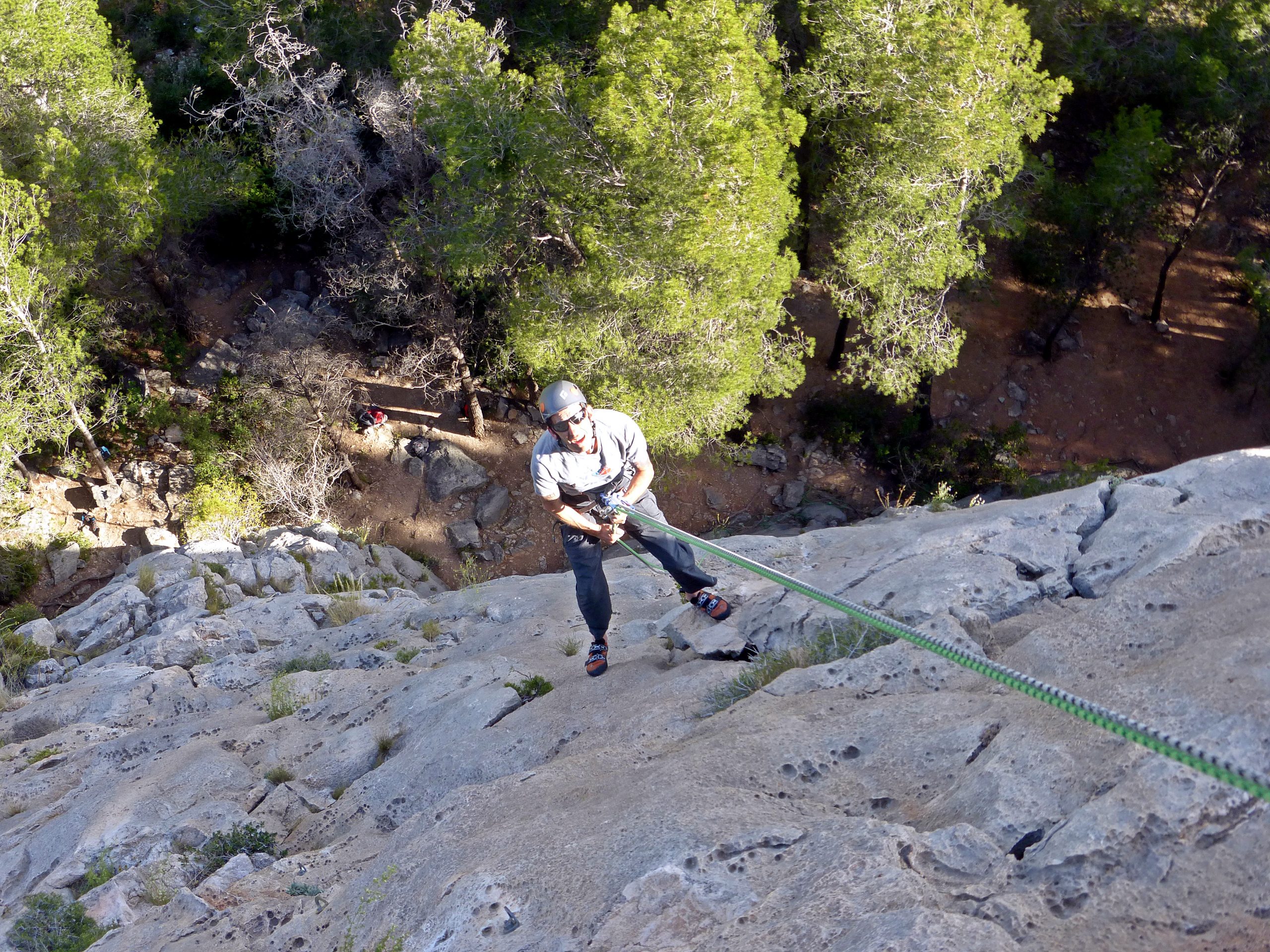 El sábado lo dedicamos a aprender maniobras y herramientas fundamentales de uso de cuerdas y métodos de aseguramiento, aparte de practicar un poco de escalada, rapel y los que utilizamos en terreno de montaña.