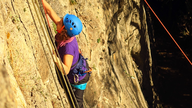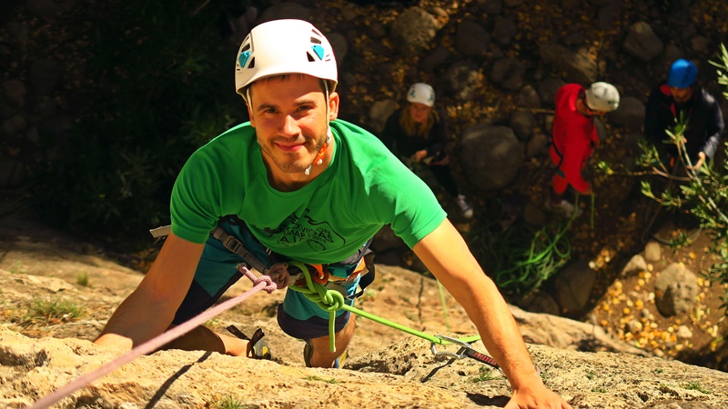 Y después de comer unos decidieron seguir practicando con cuerda de seguridad y otros quisieron experimentar la escalada de primero de verdad.