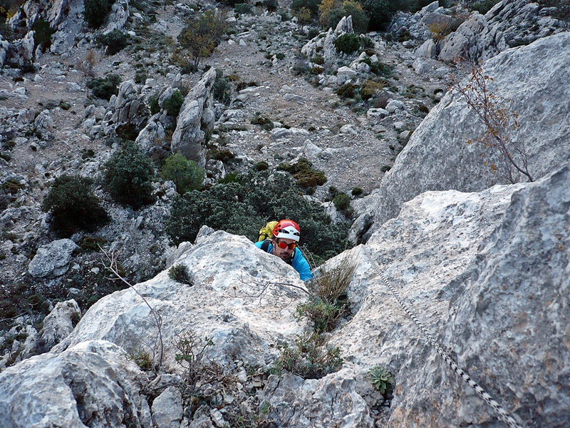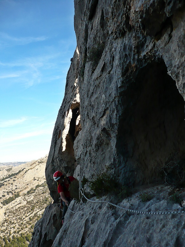 Un par de largos nos sitúan en el filo. Todo el recorrido está bien marcado por puentes de roca y algún parabolt suelto.