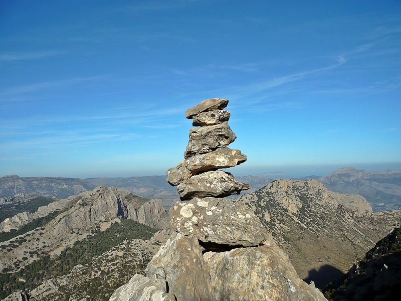 Tras alcanzar la cumbre debemos desandar el camino hasta un colladito que descenderemos hasta el gran collado que separa las dos cumbres del Puig y ya muy bien marcado con carteles.