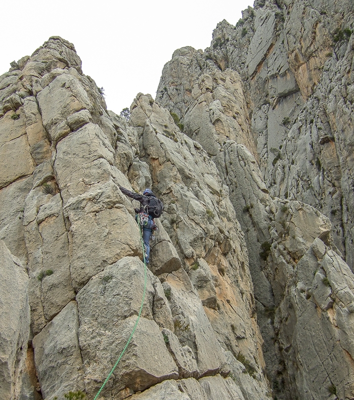 Los largos de la «Aristóteles» hay que ir navegando y buscando las debilidades de la pared para no perder el buen camino.